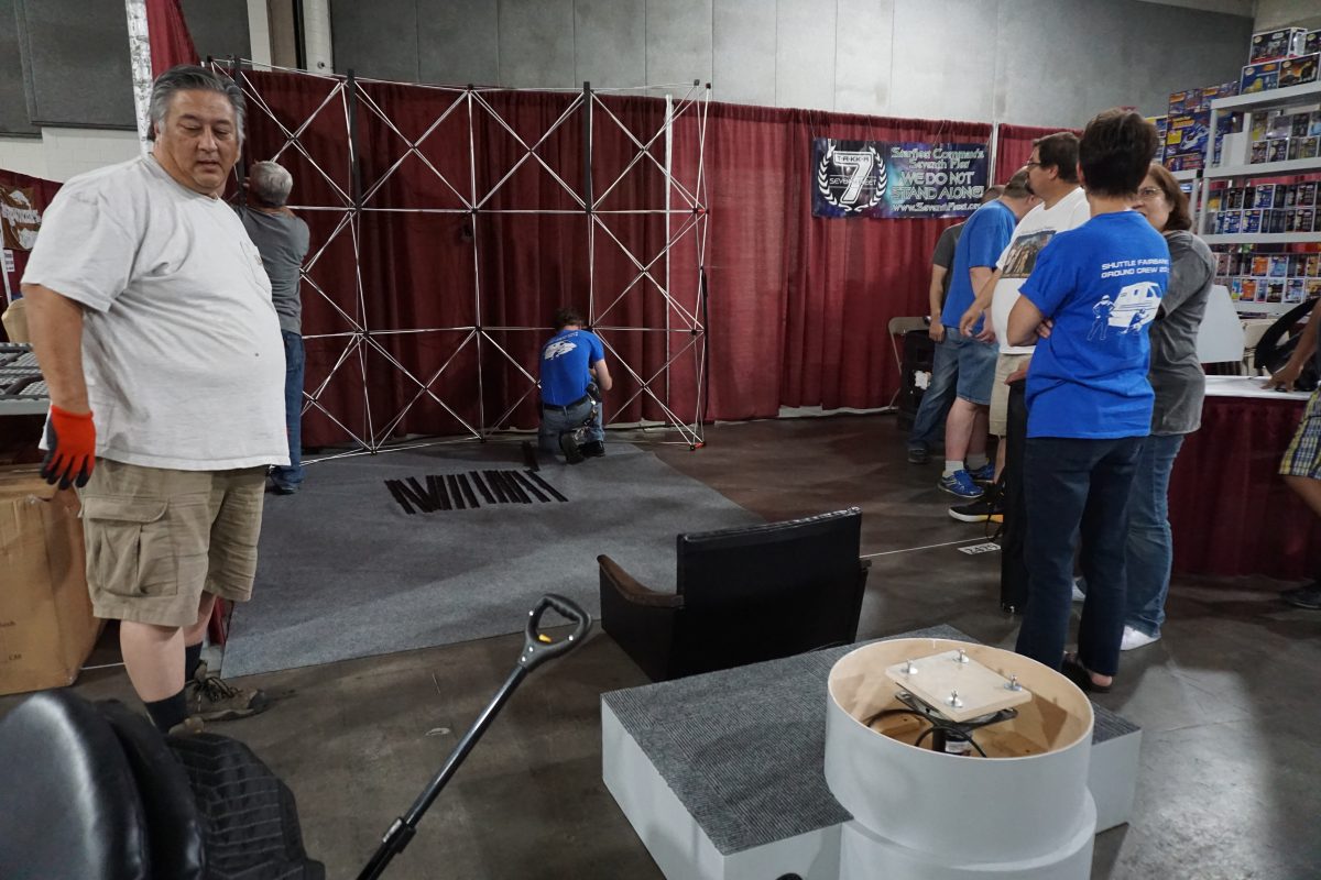 Members setting up the Seventh Fleet booth at FanX 2018.