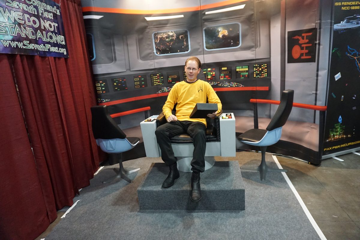 USS Ticonderoga member Kenway Miller in the Captain's Chair at FanX 2018.