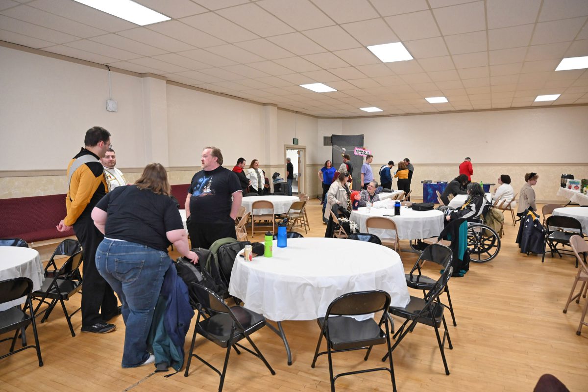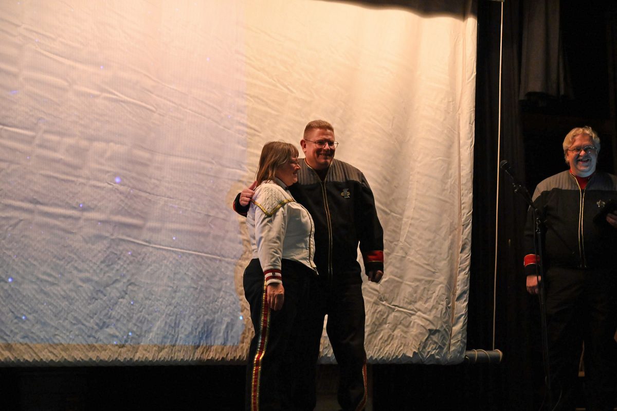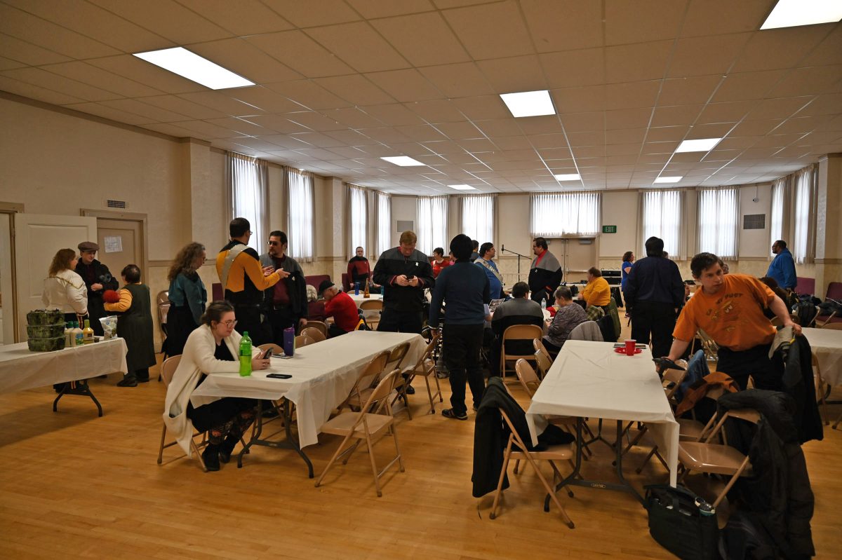 The crew of the USS Pulsar visiting a local science exhibit.