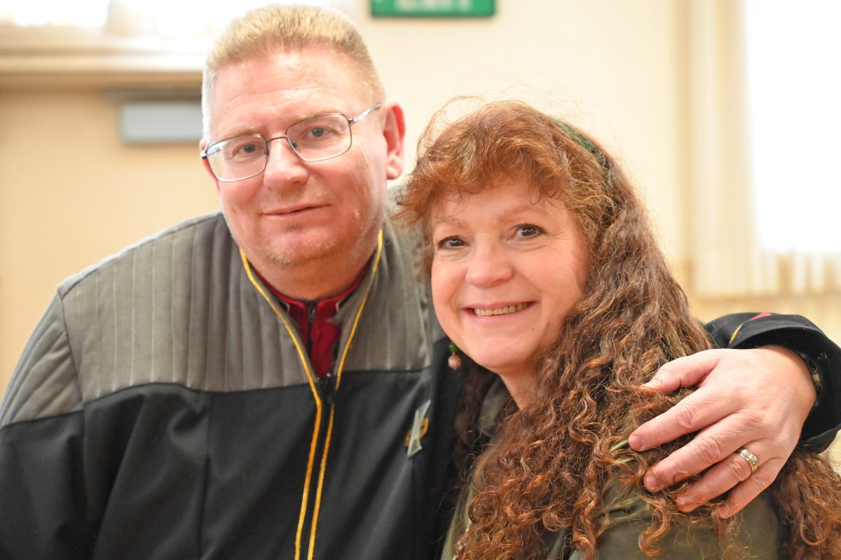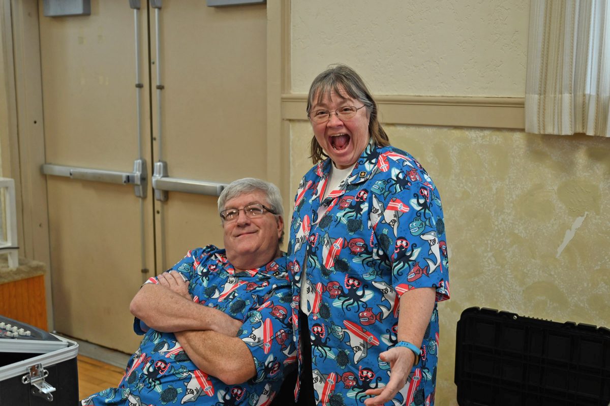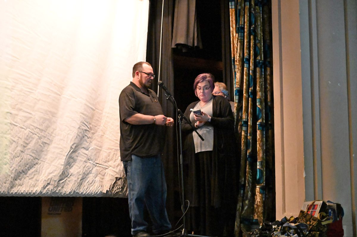 USS Ticonderoga members Kevin and Dani Hancock make a presentation at the Admiral's Banquet 2020.